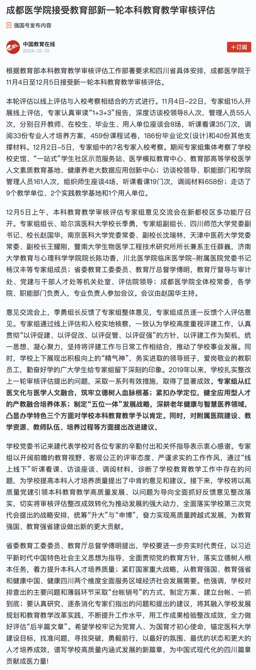 【审核评估】-强国号:成都医学院接受教育部新一轮本科教育教学审核评估